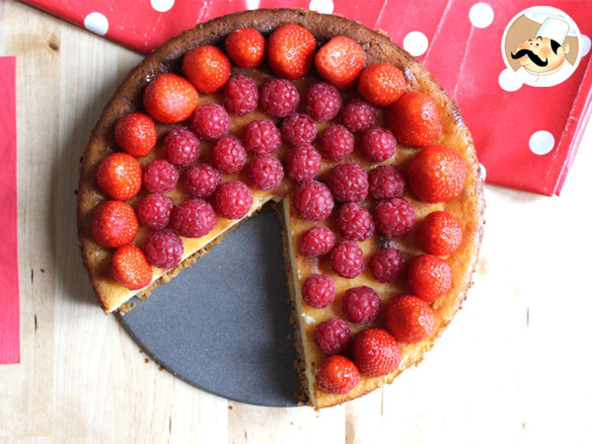 Petitchef.es cocina para vosotros! Esta vez os deleitamos con una receta deliciosa... Cheesecake con fresas y frambuesas! Pastel que no dejará indiferente al que lo pruebe :)