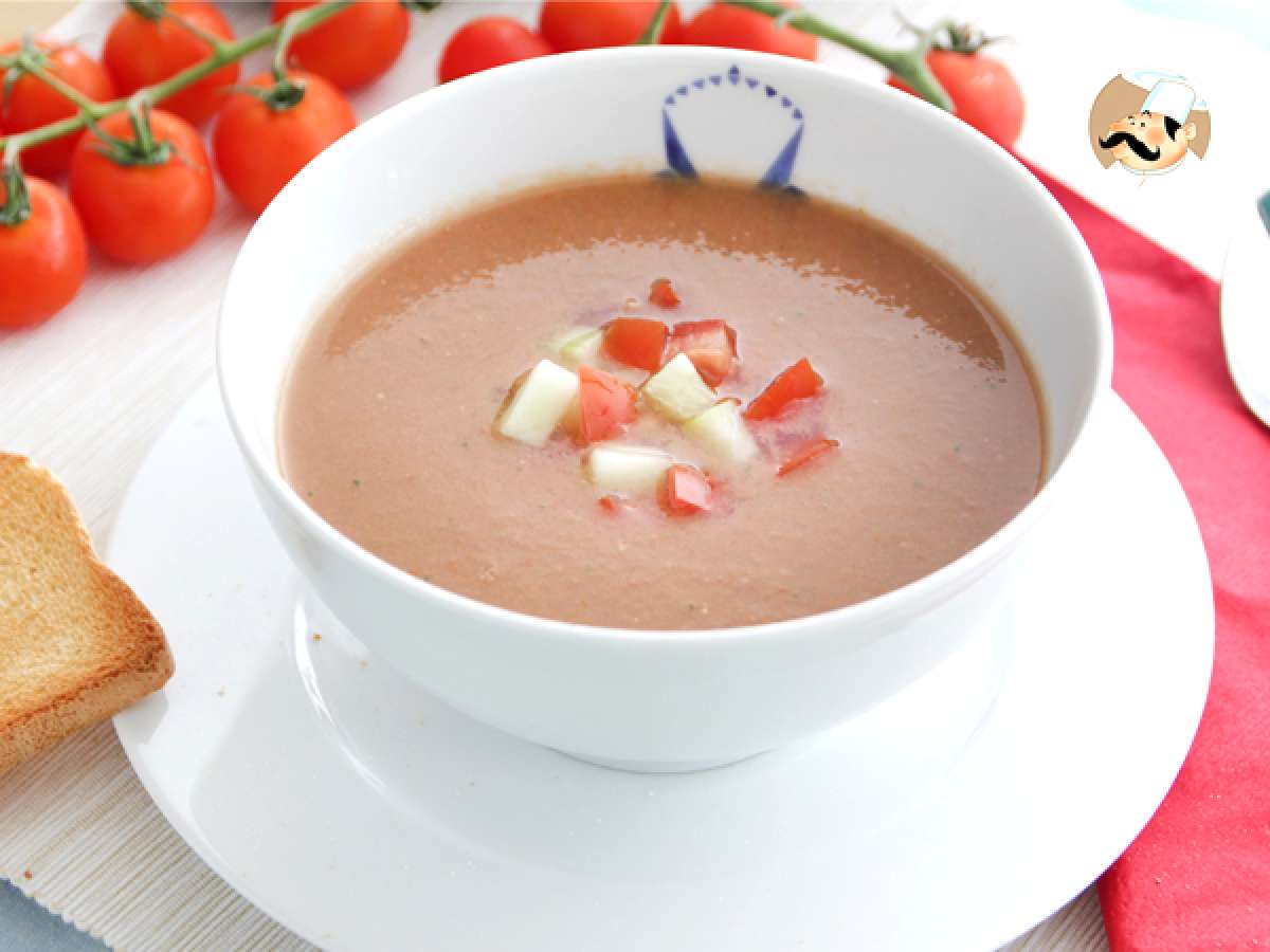 Petitchef te acerca el sur a través de su gastronomía. En este caso, del delicioso y refrescante Gazpacho Andaluz . Este gazpacho te quitará la sed de un tirón al mismo tiempo que te aporta vitaminas. Ideal para que los niños coman sano y rico!