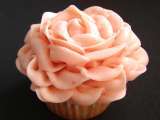Cupcake decorado con rosa en buttercream de fresa