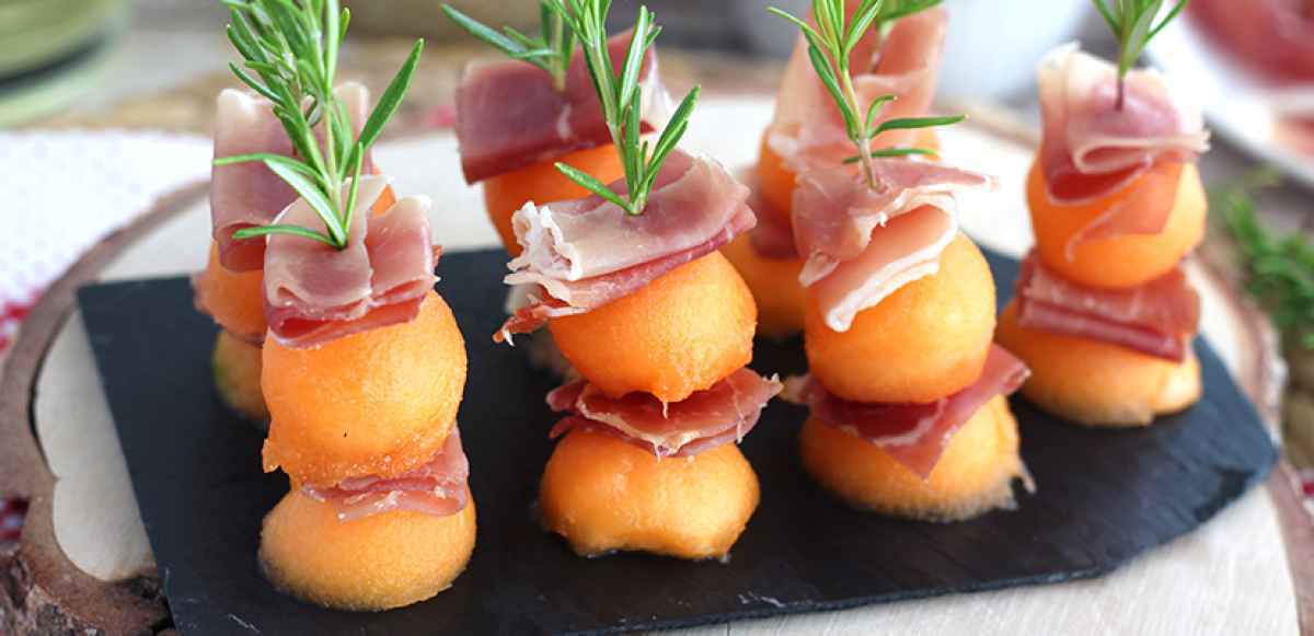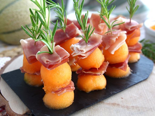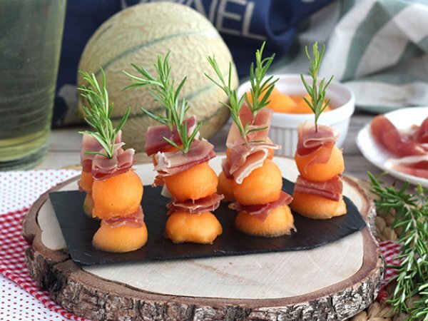Melón con jamón es una combinación clásica que no pasa de moda porque está riquísima. Una combinación muy popular en España e Italia servidos como entrante. La asociación del refrescante y dulce melón con el salado del jamón da lugar a un contraste en boca muy interesante. Para darle un toque original lo hemos servido en brochetas que, además de quedar muy vistosas son muy cómodas para el comensal que puede comerlas fácilmente.