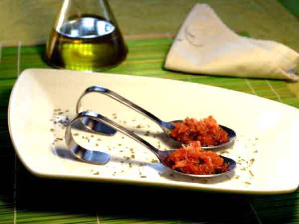 Tomate confitado con virutas de jamón ibérico al aroma de orégan