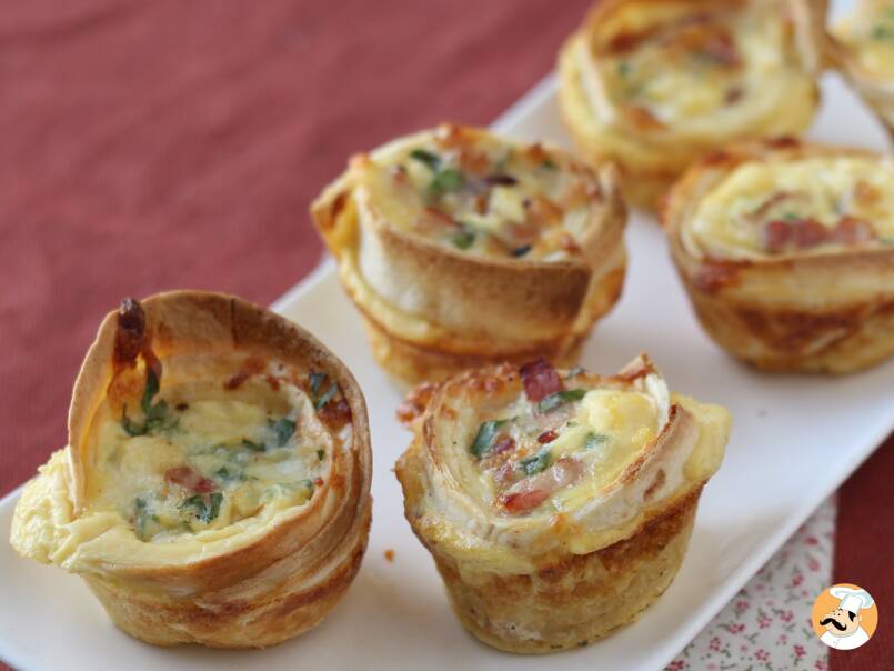 Si antes hemos hecho unos cuencos ahora toca el turno a esta especie de cestita que se debate entre una magdalena salada y crocante y una quiche. Si tienes el clásico molde de muffins apúntate esta receta para sorprender a todos tus comensales en el próximo aperitivo. Te avisamos, haz de sobra porque están tan buenas que no podrás parar de comerlos.