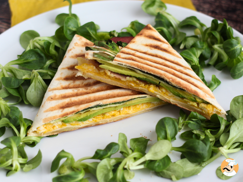 Un sándwich de lo más original que se hizo viral en las redes sociales por su sencillez y originalidad. Aquí, la idea está en dividir imaginariamente la tortilla en 4 partes y en cada una de ellas ir poniendo diferentes ingredientes, por ejemplo: tortilla francesa, queso rallado, jamón cocido y tomate. Luego plegaremos la tortilla sobre sí misma para que nos quede un sándwich con forma de triángulo. ¡Es sencillísimo y cunde mucho! Además las opciones son casi infinitas ¿qué ingredientes le pondrías tú? Aquí te dejamos otra idea: