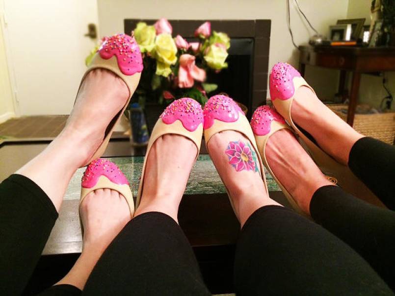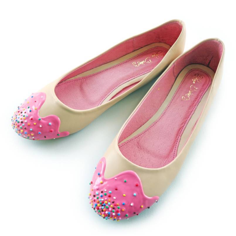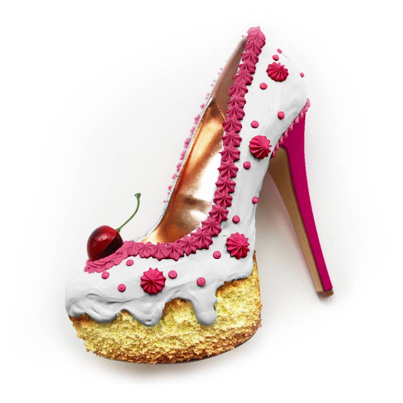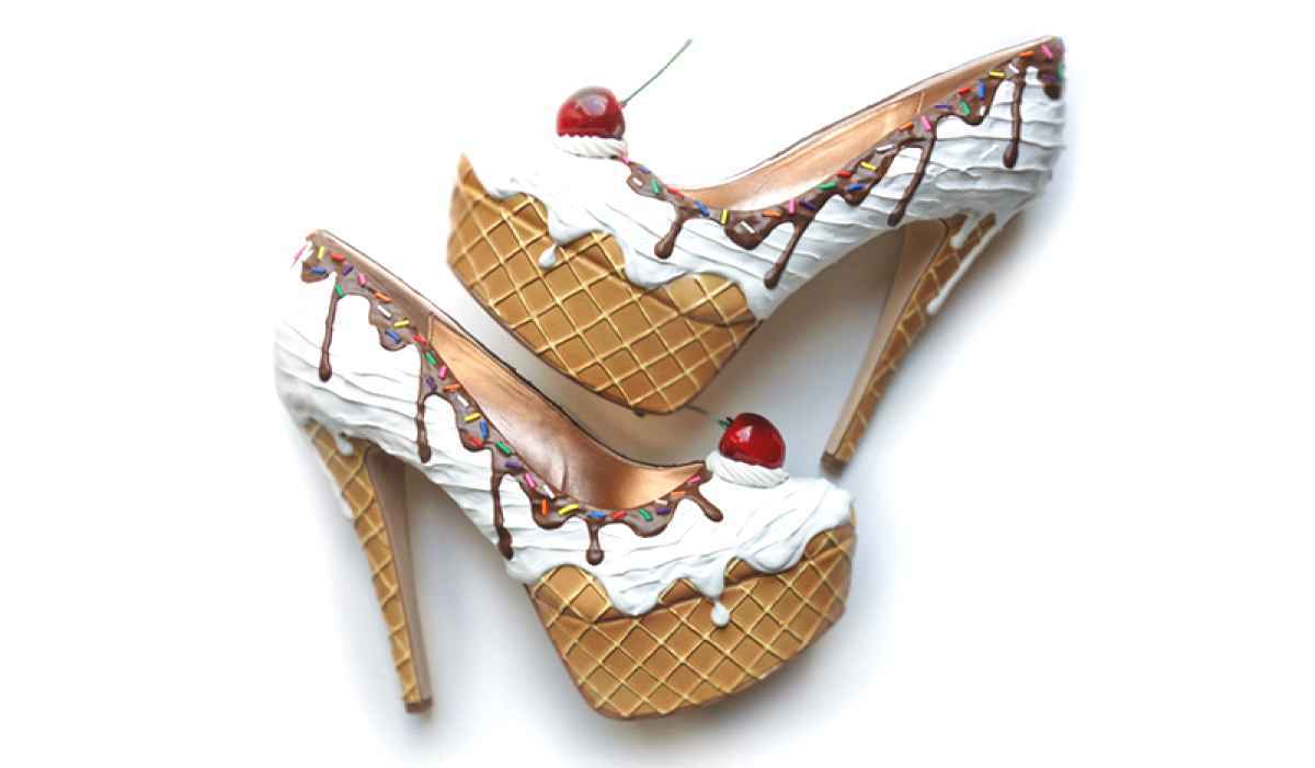 De ahí salió el resultado. Zapatos únicos, originales y con posibilidad de hacerlos a medida. Helados de fresa, textura de bizcocho, glaseado de donuts...