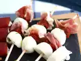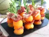 Melón con jamón es una combinación clásica que no pasa de moda porque está riquísima. Una combinación muy popular en España e Italia servidos como entrante. La asociación del refrescante y dulce melón con el salado del jamón da lugar a un contraste en boca muy interesante. Para darle un toque original lo hemos servido en brochetas que, además de quedar muy vistosas son muy cómodas para el comensal que puede comerlas fácilmente.