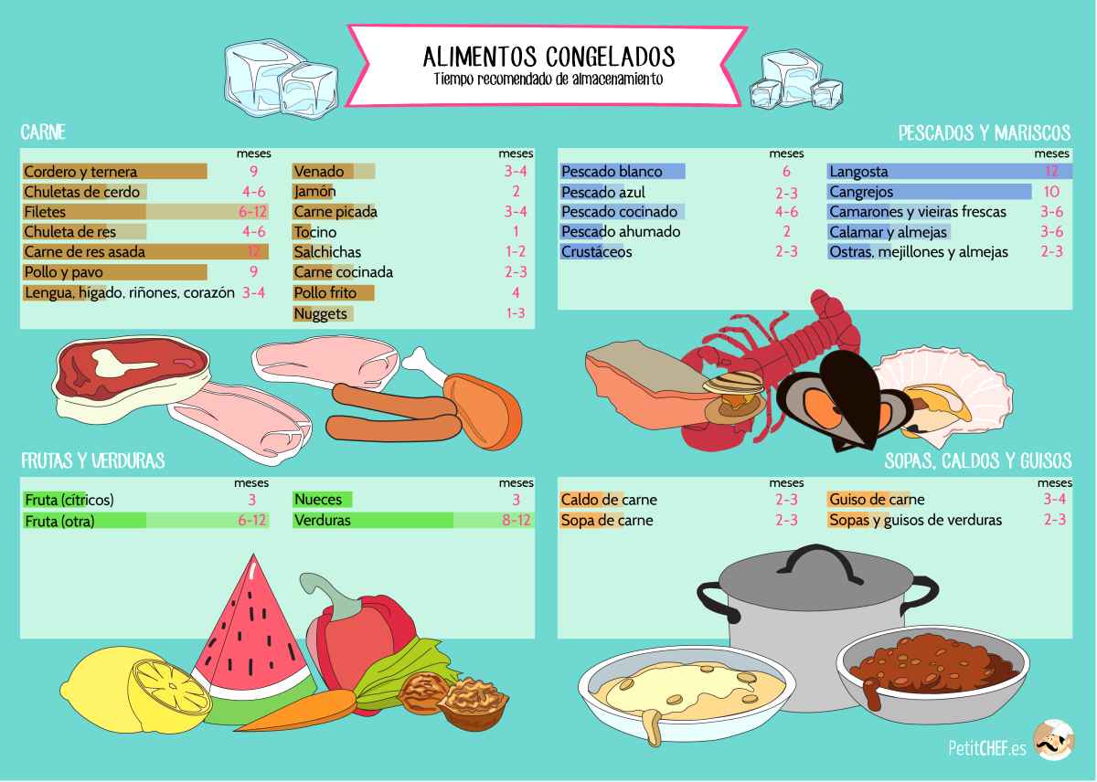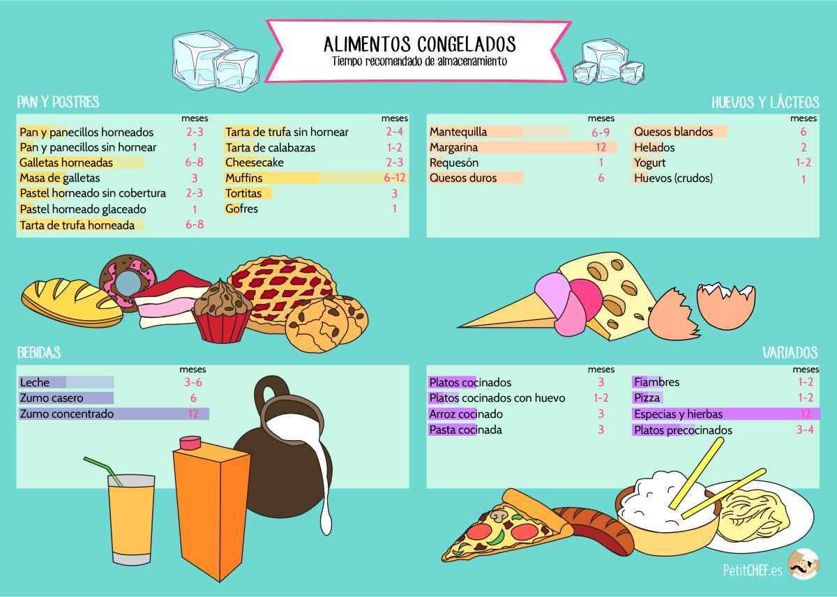 Congelar la comida, detiene el crecimiento de bacterias y así los alimentos congelados pueden ser utilizados indefinitivamente. Sin embargo, la calidad de la comida se deteriora con el tiempo por eso creemos que es importante saber el tiempo adecuado de congelación para los alimentos que os traemos a continuación.