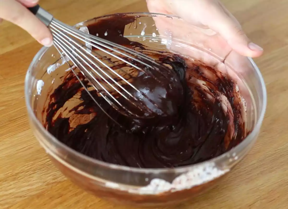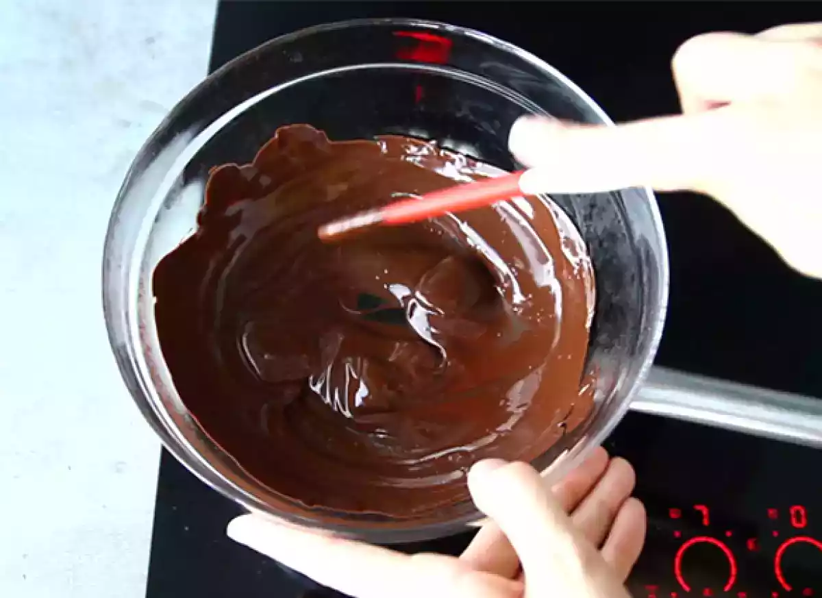 - Hervir la nata y verterla en el bol del chocolate fundido. Mezclar bien con unas varilla manuales.