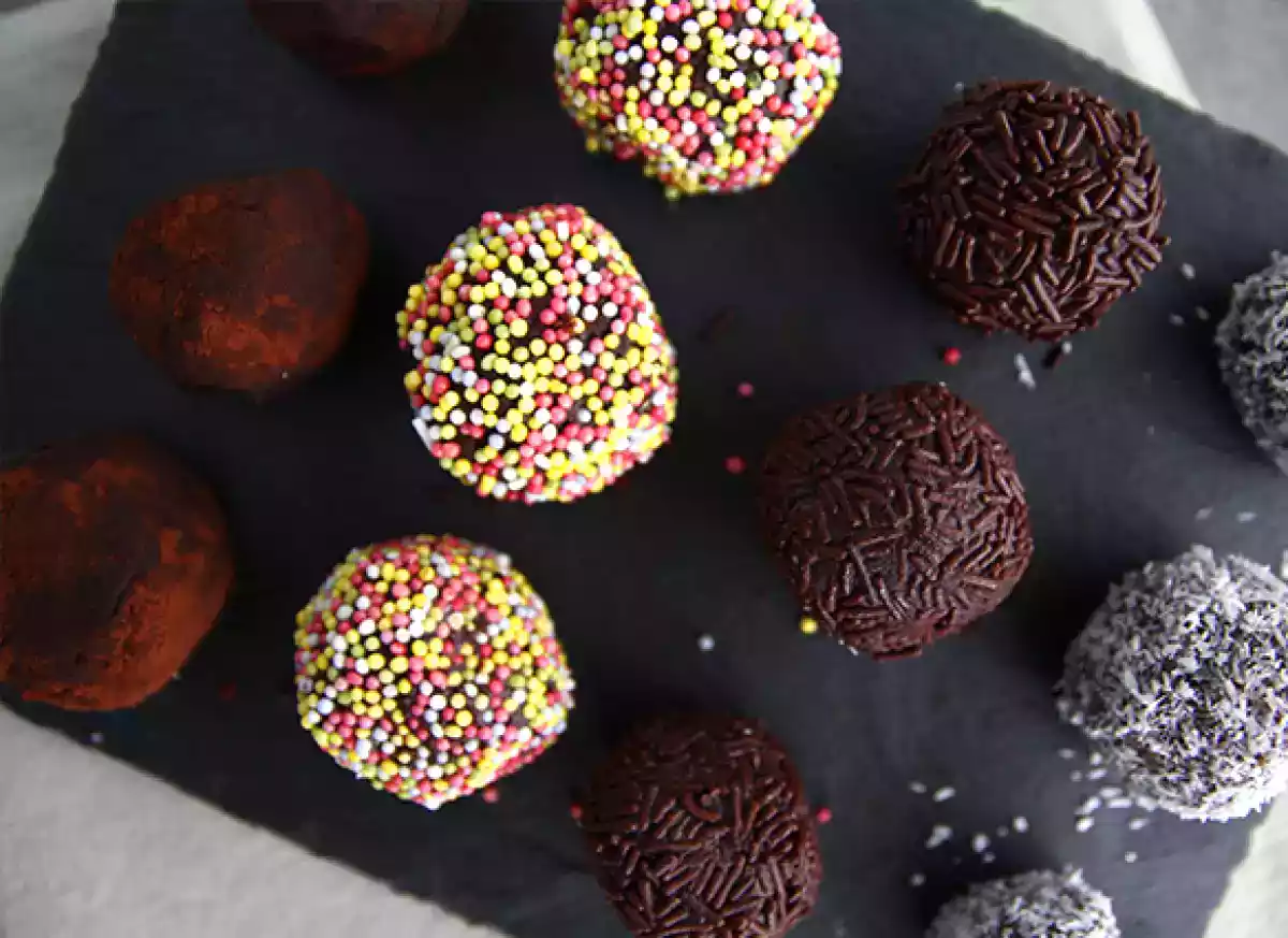 - Pasar algunas trufas por coco rallado, otras por cacao, otras virutas de chocolate.