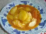 Ingredientes: Ocho rodajas de congrio. Seis patatas. Dos huevos. Aceite de oliva. Tres dientes de ajo. Un vasito de vinagre. Pimenton de la Vera, una cucharada...