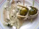 Ingredientes: 4 filetes de pechuga (sería un filete por persona, pon 2 filetes si son muy pequeños) 1 calabacín grande (o 2 pequeños) 12 aceitunas negras (sin...