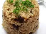 Ingredientes: 350 g de arroz 1 cebolleta 2 dientes de ajo 50 g de pasas 25 g de nueces tostadas 20 g de mantequilla 1 dedal de aceite de oliva 3 cucharadas...