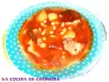 Ingredientes: un trozo de morcilla un trozo de chorizo un trozo de tocino de jamon 1 patata grande alubias blancas mecia cebolla 1 pimiento verde 1 zanahoria 2...