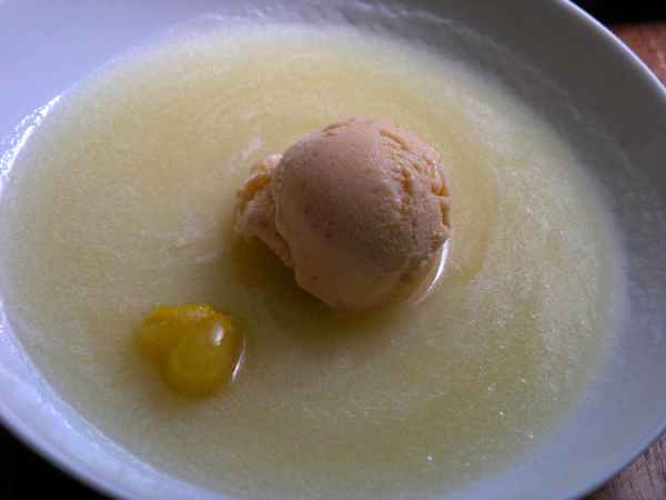Esfera de tiramisú, con gelatina de fresas, una versión renovada del postre clásico
