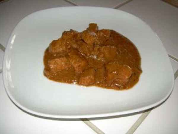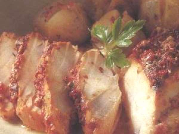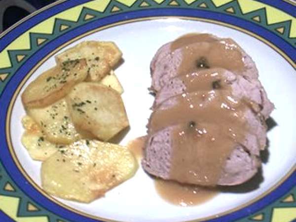 Lomo de cerdo con frutas frescas y secas con salsa de sidra