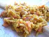 Sandwich enrollado de membrillo y queso azul. paso a paso.