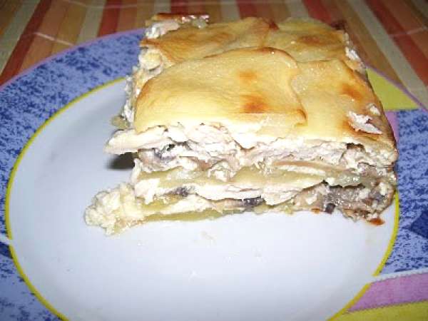Pastel de patata , seta y pollo