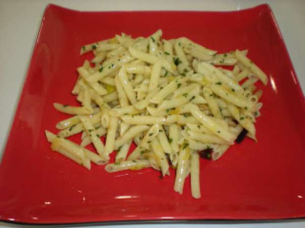 Macarrones finos con ajetes tiernos