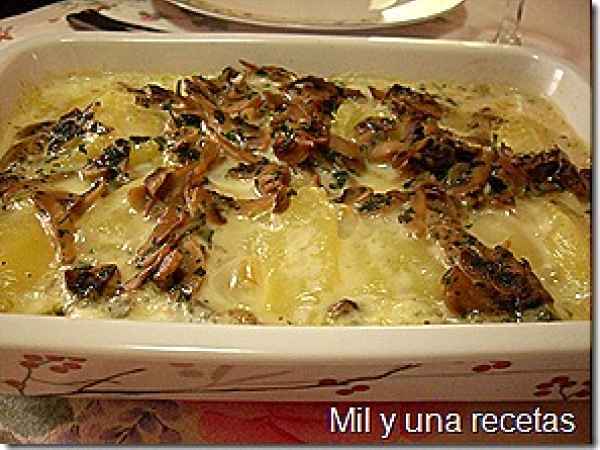 Patatas con queso y champiñones
