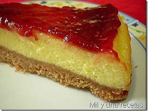 Cheesecake con mermelada de frambuesa