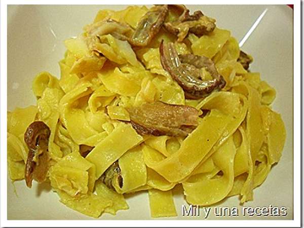 Tagliatelle con boletus y perca