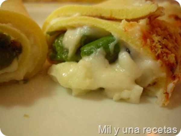 Crepes con espárragos y queso brie