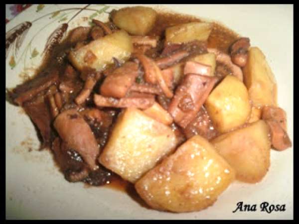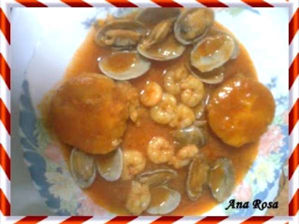 Tortilla de patatas con bonito , bocas de mar y langostinos cocidos