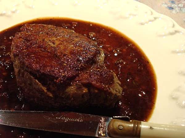 Medallones de solomillo de cerdo ibérico con puré de manzana y rebozuelos