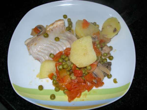 Merluza con guisantes y esparragos