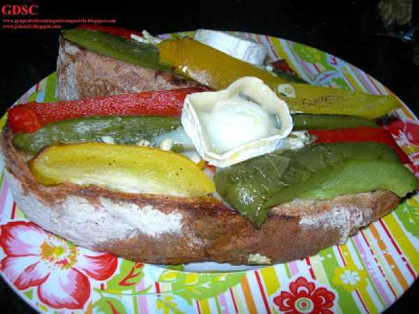 Tosta de queso y pimientos asados