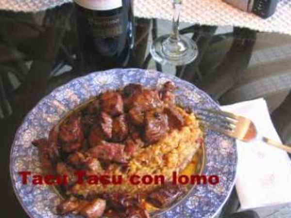 Tacu tacu de frijoles con lomo