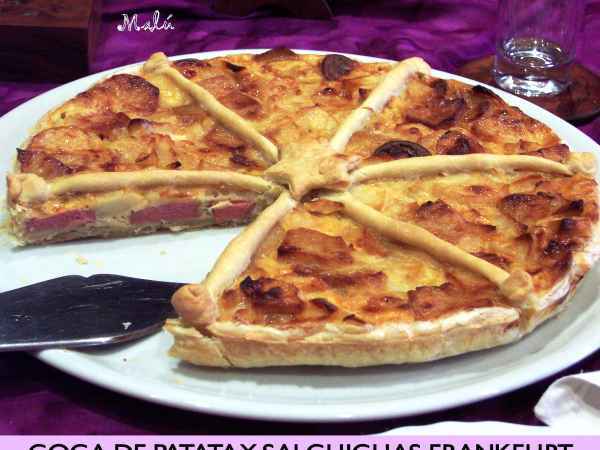 Coca de patata y salchichas frankfurt