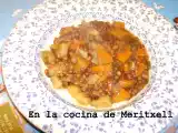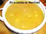 Crema de lentejas rojas, verduritas y salchicha alemana