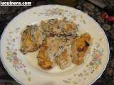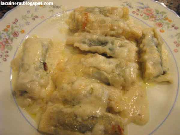 Canelones rellenos de espinacas, pasas de corinto, piñones y rulo de cabra