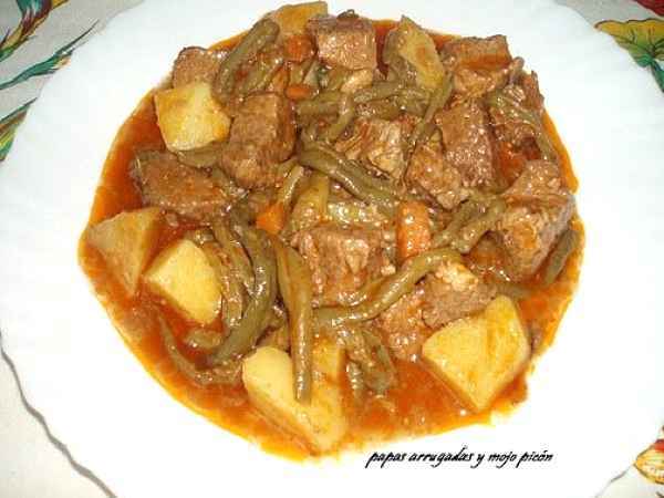 Papas con carne y habichuelas