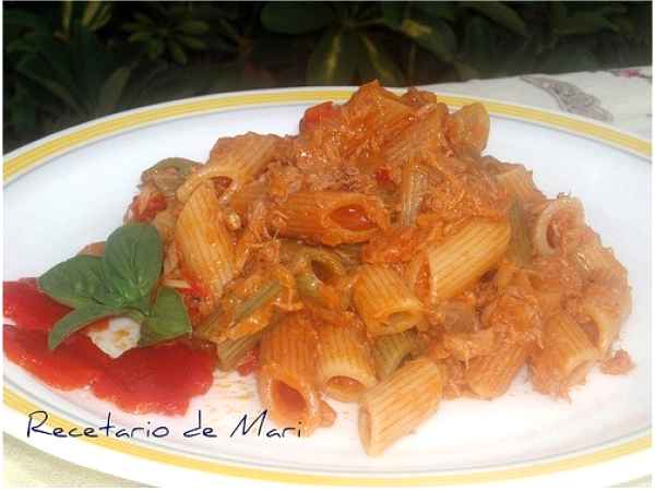 Macarrones de atún con pimiento de piquillo