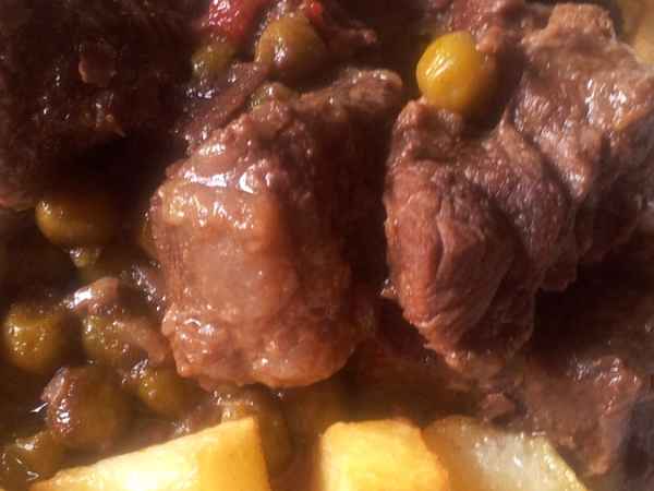 Carne guisada de ternera, con patatas, chorizo, jamón serrano y vino de somontano Plato Plato 4.4 / 5