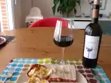 Champiñones rellenos con queso gorgonzola dolce con franchete syrah y petit verdot 2010