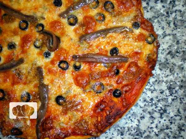 Pizza de anchoas con salsa de nueces y gorgonzola