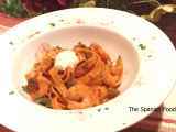 Salteado de lomos de salmón, langostinos y ajos tiernos
