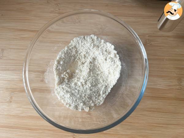 Mezclar la harina, el parmesano y el pan rallado. Añadir sal, pimienta, romero seco y ajo en polvo.
