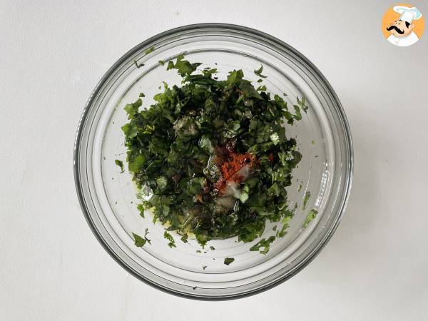 Mientras las patatas se hornean, aprovecha para preparar el chimichurri.