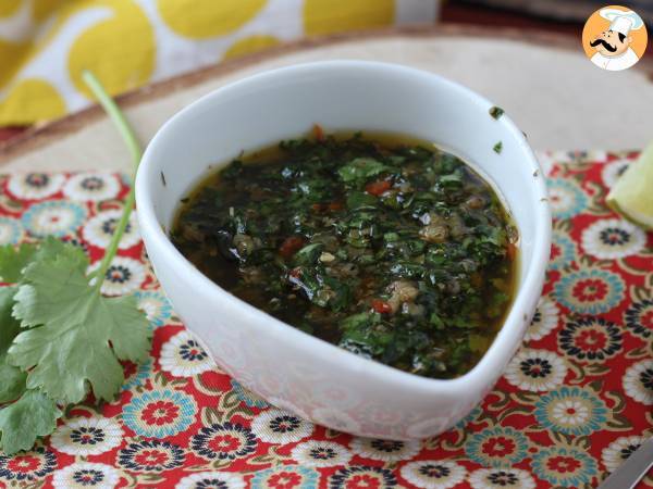 Deja reposar la salsa chimichurri unos 30 minutos para que todos los sabores se integren.