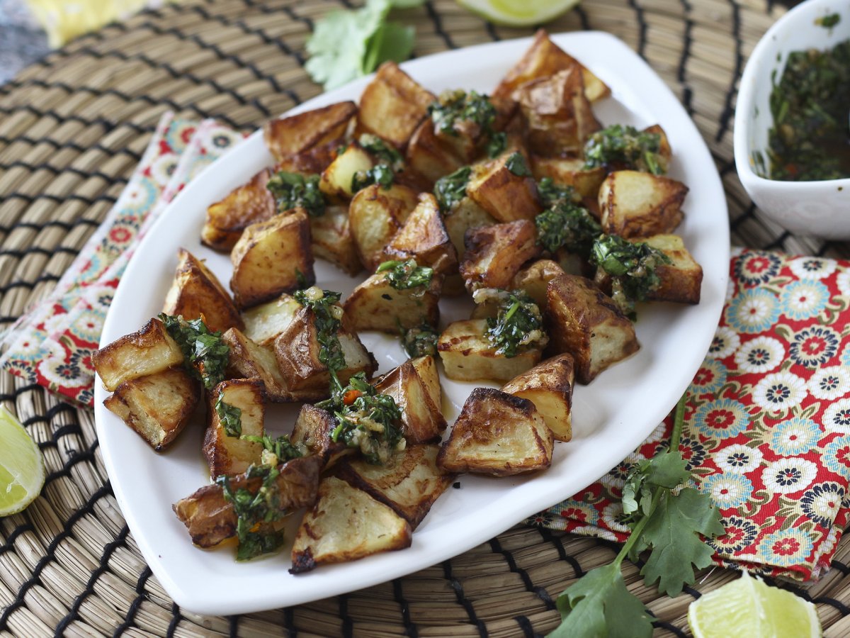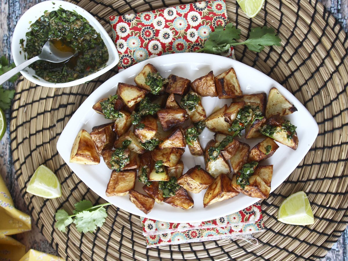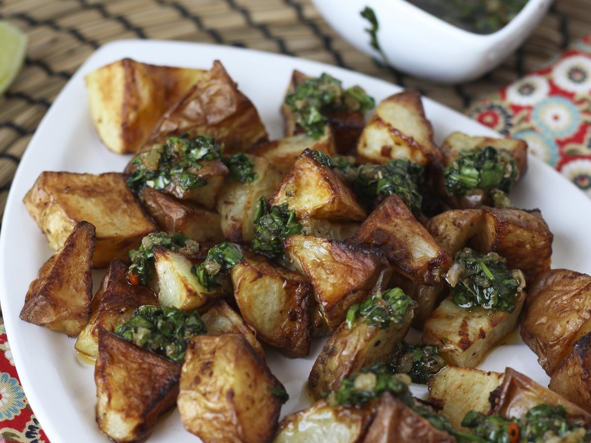 ¿Con qué puedo acompañar estas patatas asadas con chimichurri?