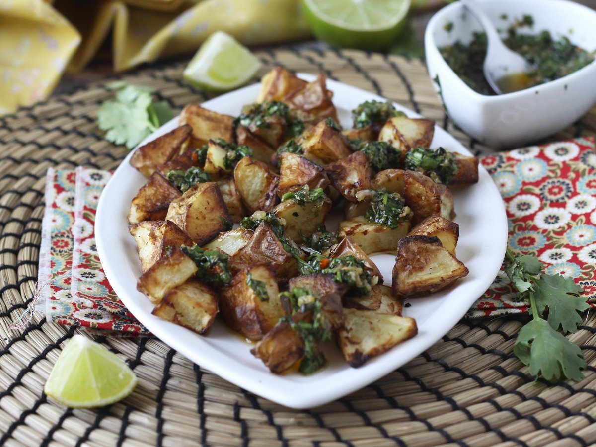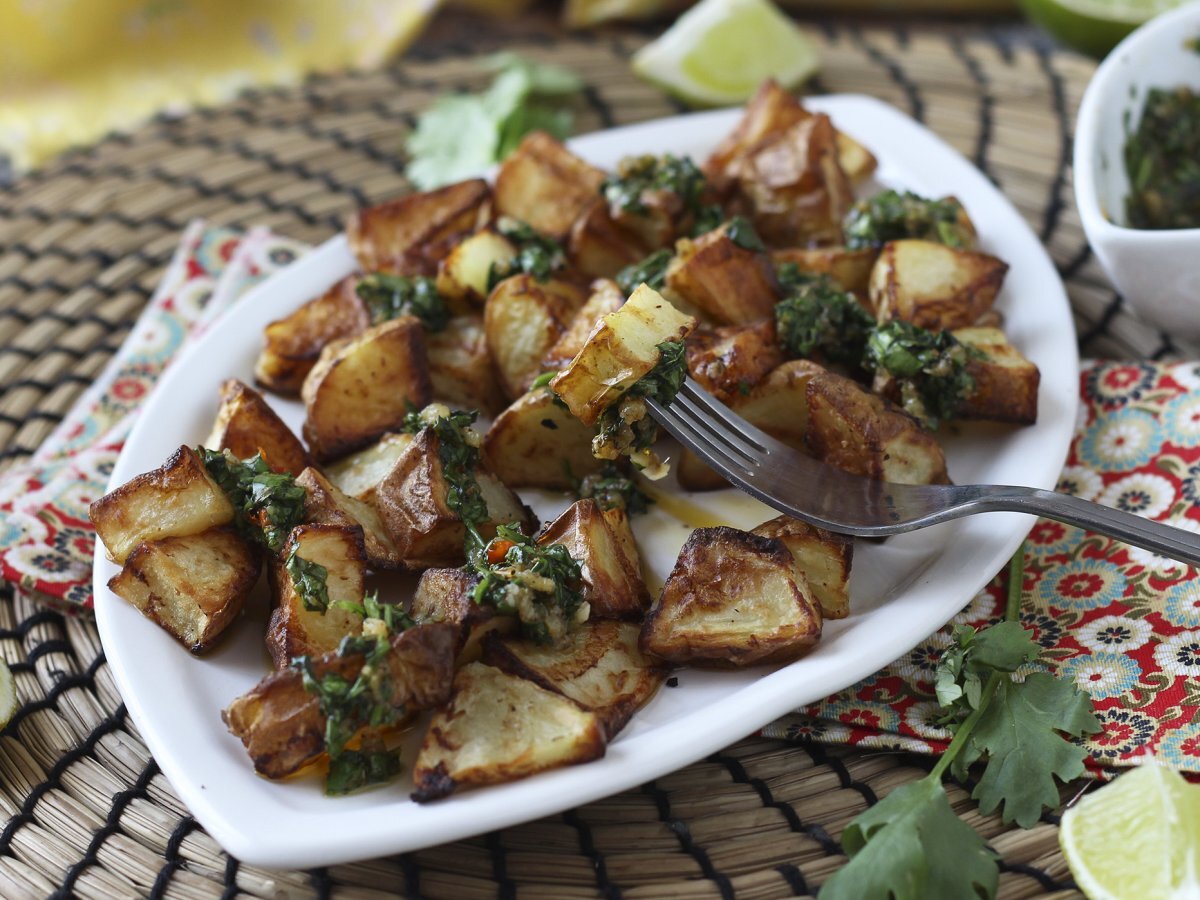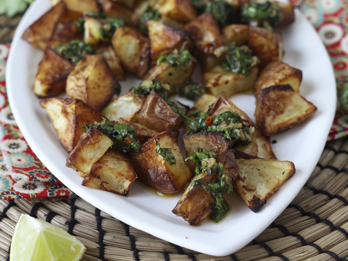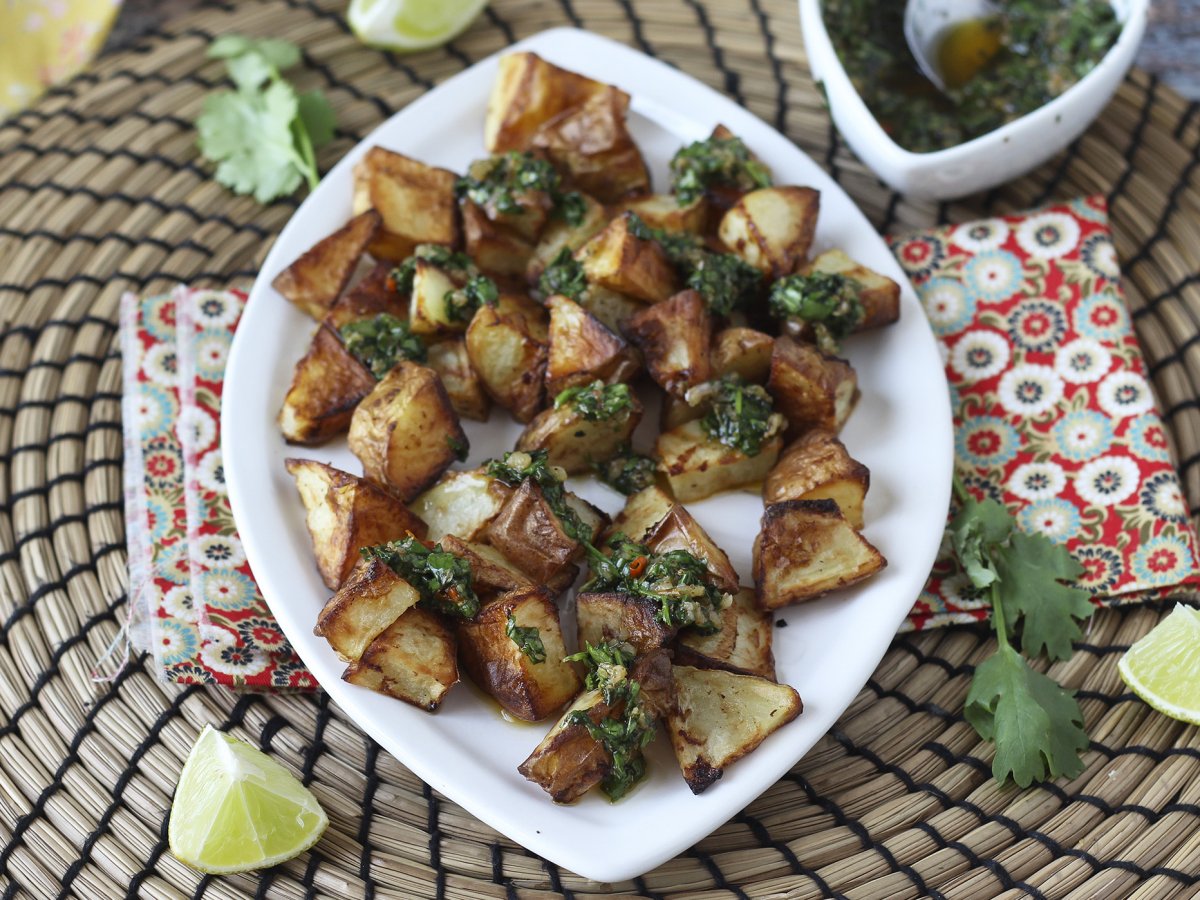 ¿Con qué puedo acompañar estas patatas asadas con chimichurri?