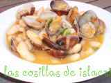 Ingredientes: 600 gr de bacalao en su punto de sal, 200 gr de almejas, 200 gr de gulas 150 gr de gambas peladas, caldo de pescado media cebolla, 1 diente de ajo,...