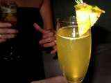 Ingredientes: Champagne 40 gr Jugo de Ananá 10 gr Jugo de Limón, 1 Cucharadita de Azúcar Impalpable o Jarabe de Goma Decoración : Trozos de Ananá y Frutillas