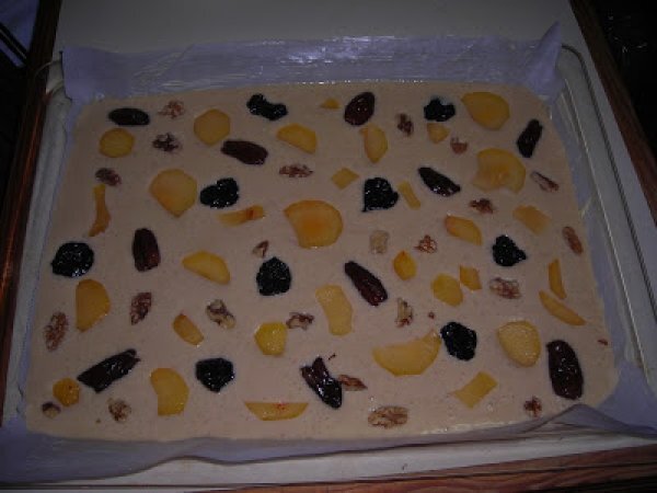 Bizcocho con dátiles, ciruelas y nueces. feliz cumpleaños isabel AnteriorSiguiente AperitivoFácil35 min Enviar esta receta a un amigo Imprimir esta página Preguntar al autor Publicar la foto de esta receta Ingredientes 2 4 Huevos 1 1/2 de azúcar 1 yogur de macedonia 3/4 de un vaso de aceite de oliva 250 g de harina de bizcocho Canela en polvo Dátiles Ciruelas pasas Ciruelas frescas amarillas Nueces Azúcar por encima, no demasiada.