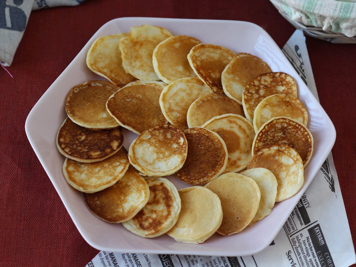 Puedes hacer blinis de cualquier tamaño. Cuando la masa empiece a burbujear, dé la vuelta a los blinis y espere a que se doren por debajo antes de retirarlos del fuego.