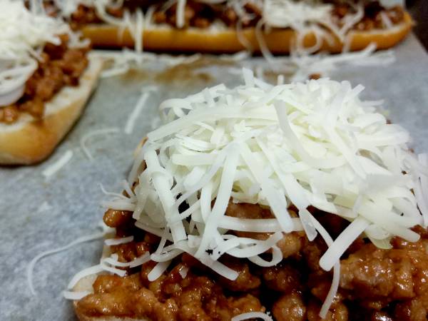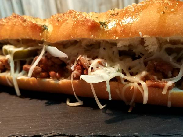 Bocadillo de carne picada a la barbacoa con jalapeños y queso.