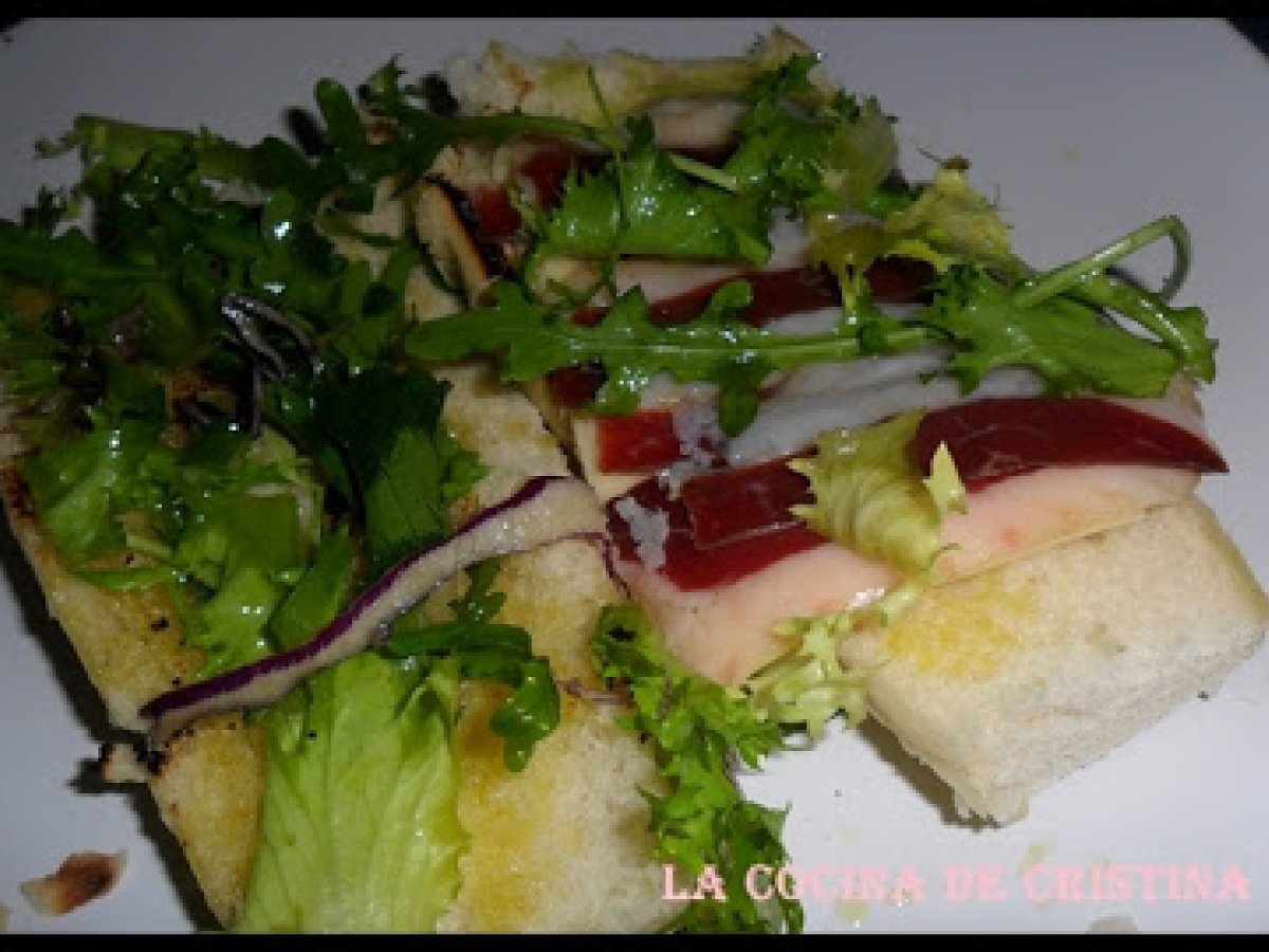 Bocadillo de jamon de pato y rucula AnteriorSiguiente AperitivoFácil15 min222 Kcal Enviar esta receta a un amigo Imprimir esta página Preguntar al autor Publicar la foto de esta receta Ingredientes 2 pan rúcula sal y aceite jamón de pato Costo estimado: 3.5Euros€ (1.75€/porción)